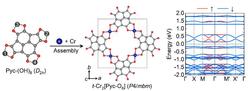 图2. 吡喃烯基金属有机框架单层材料t-Cr₂[Pyc-O₈]与电子能带结构