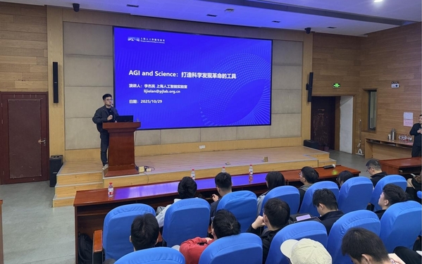 李杰岚研究员以“AGIandScience:打造科学发现革命的工具”为主题进行报告。他从人工智能技术的快速演进谈起,系统阐述了从“AIforScience”向“AGIforScience”发展的逻辑与内在驱动力,指出人工智能正推动科学研究从经验驱动、数据驱动迈向智能驱动的新阶段。李杰岚研究员结合自身研究与上海人工智能实验室的最新实践,介绍了实验室在模型、数据、平台、系统与智能体五大基础能力建设方面的创新成果,展示了人工智能在化学、材料、气象、生物等领域助力科学发现的典型案例。他强调,通用人工智能的出现,将使科研工作从被动验证转向主动发现,未来的科学研究将更加智能化、协同化、人机共创。