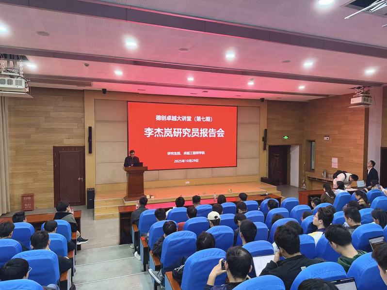 10月29日下午,中国科学技术大学“德创卓越大讲堂”第七期活动在东区环资楼116报告厅成功举办。上海人工智能实验室青年科学家李杰岚研究员应邀作主题报告。研究生院副院长李思敏主持会议。在致辞中,李思敏副院长首先对李杰岚研究员的到来表示热烈欢迎,并向长期关注和支持“德创卓越大讲堂”活动的各位专家、老师和同学们表示感谢。他指出,“德创卓越大讲堂”是学校专门为工程类专业学位研究生打造的重要学术交流平台,旨在通过邀请行业内知名专家分享科技前沿成果,帮助同学们了解最新研究进展,拓展学术视野,提升科研与工程实践能力。当前,人工智能正成为引领新一轮科技革命和产业变革的核心力量,而“AIforScience”“AGIforScience”代表了人工智能与科学研究融合发展的前沿方向。希望同学们珍惜此次学习机会,深入理解人工智能在科学研究中的创新意义,积极思考AI时代科研的新模式,不断提升科研创新与工程实践水平。李杰岚研究员以“AGIandScience:打造科学发现革命的工具”为主题进行报告。他从人工智能技术的快速演进谈起,系统阐述了从“AIforScience”向“AGIforScience”发展的逻辑